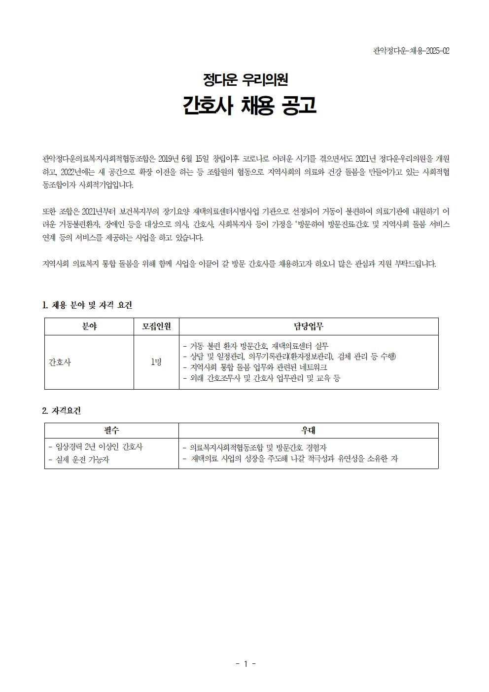 재택의료센터 방문간호사를 모집합니다.[채용완료]