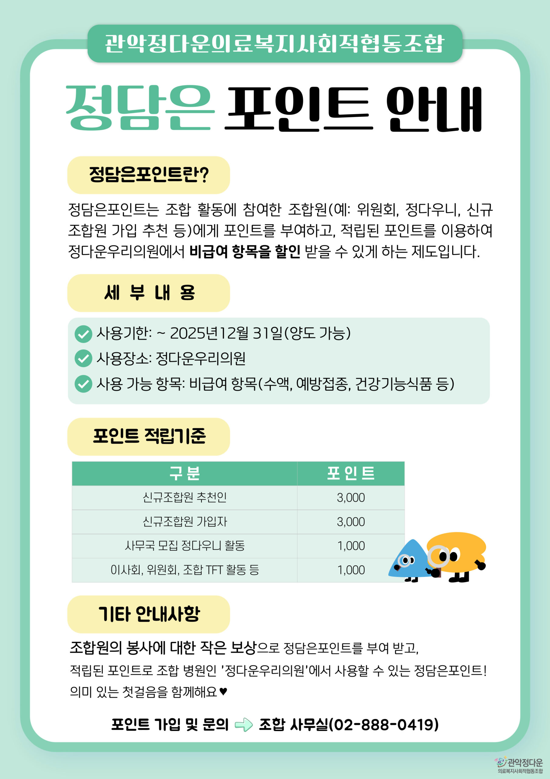 조합원 활동이 포인트가 되는 정담은 포인트! 소개합니다.
